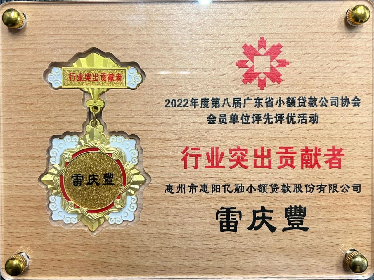 亿融金融雷庆豐荣获广东省小贷协会“行业突出贡献者”奖